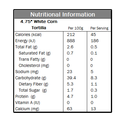 Corn Tortillas Corn Tortillas Fried Corn Chips PCUF's (Pre Cut Unfried Corn Chips) Pizza Base Wheat Tortilla
